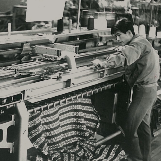 ゴールドウインが得意だった ニット技術で、機能性とデザインを追求した スキーセーター作りは、当時のゲレンデで 象徴的なスタイルを送り出しました。