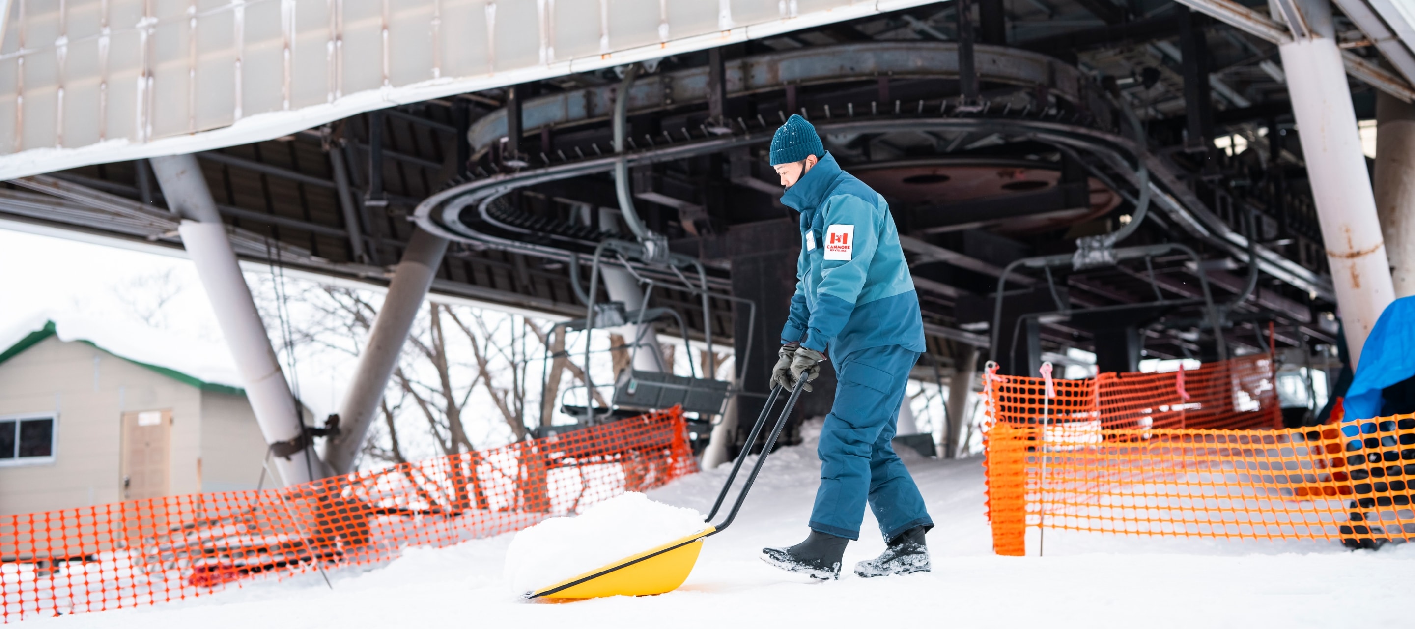 「より楽しく、もっと安全に」を心がけ、毎年新しい取り組みにチャレンジする「キャンモアスキービレッジ」が、今シーズンから新たに導入したのがGoldwinのワークウエアだ。これまでは町内に店舗を構えるアウトドアショップのスキーウエアを購入していたが、レンタルサービスに魅力を感じ、このワークウエアの導入を決めた。