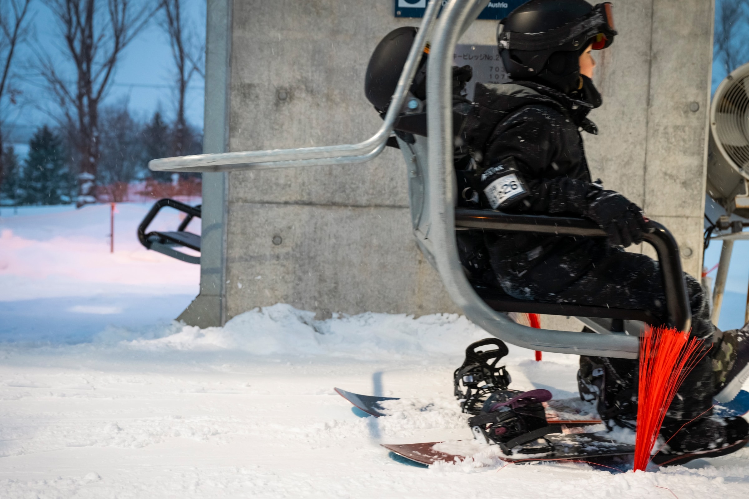 子どもの身長に合わせ、座面の高さを低く設定したリフト。初めてリフトに乗る子どもも安心して利用できる