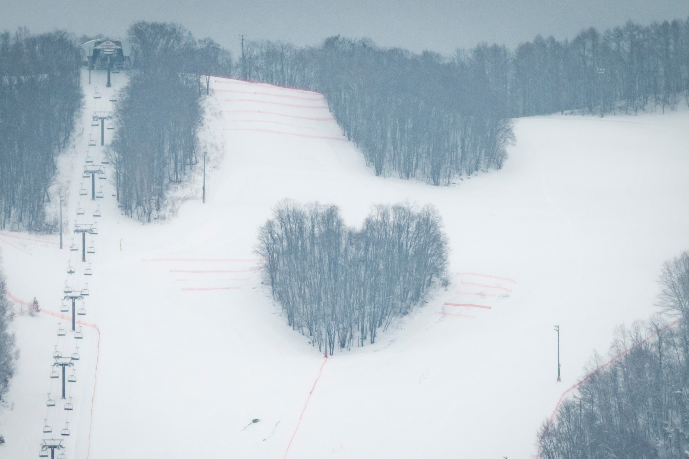 ハート型に刈り込んだ林がスキー場のシンボル