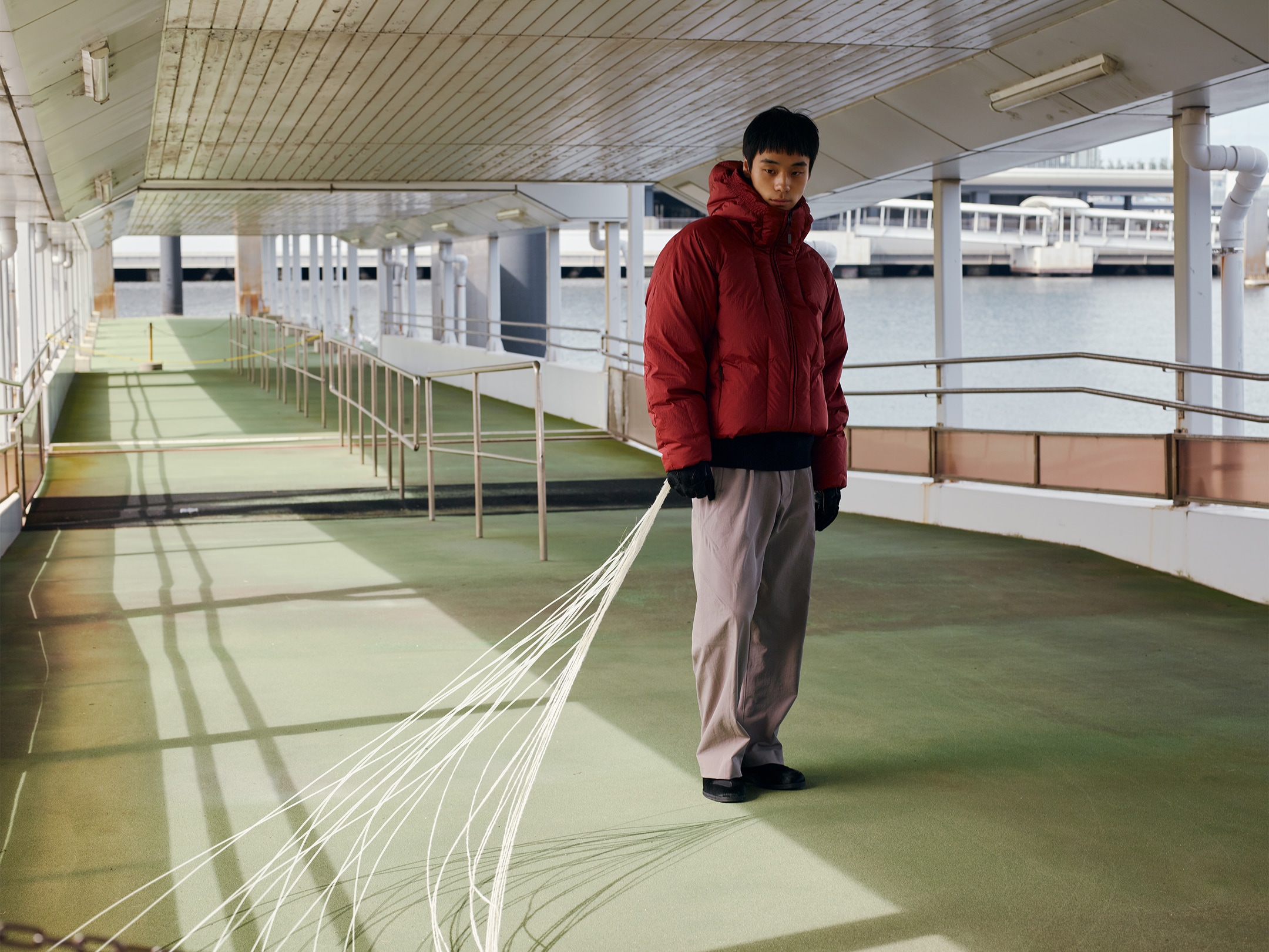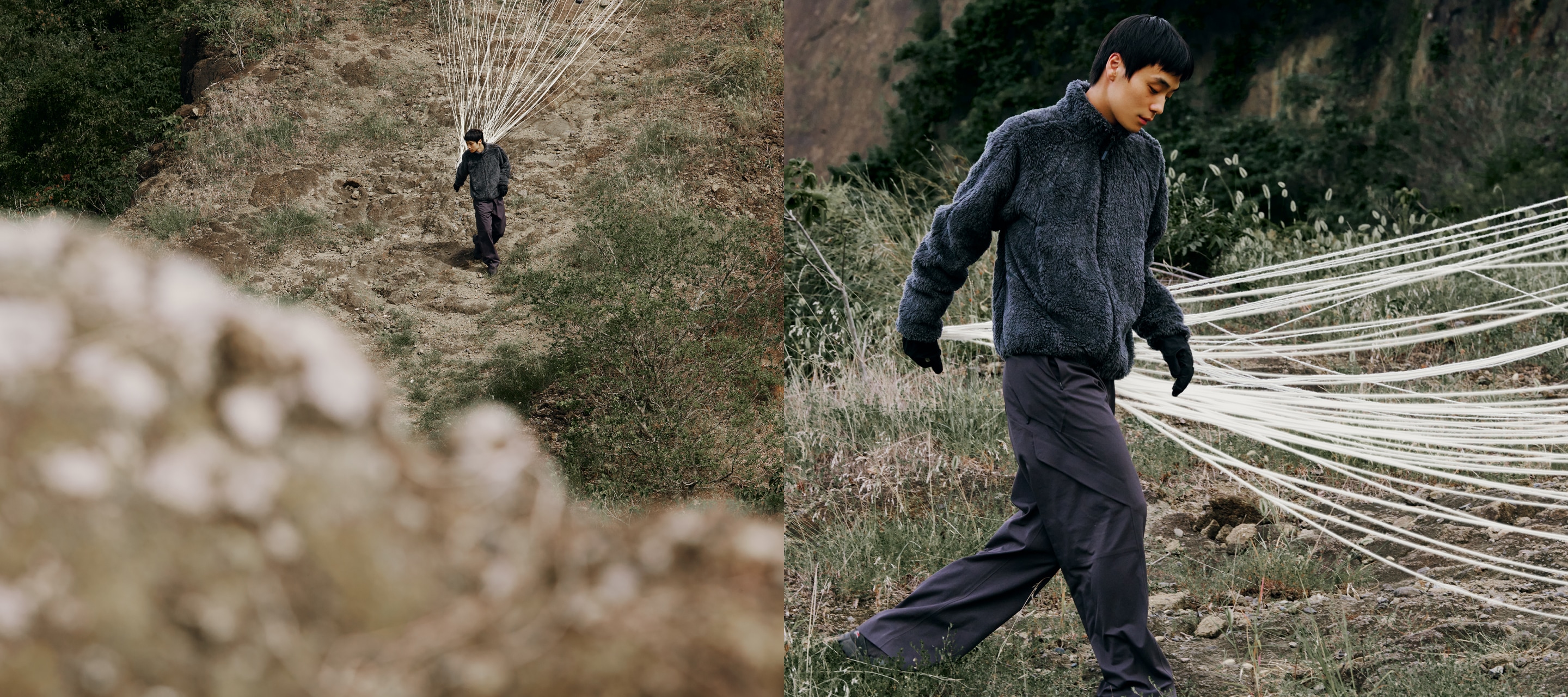 _J.L-A.L_とGoldwinの第二弾となるコラボレーションコレクションを発売します。ロンドンを拠点とするJean-Luc Ambridge が手掛ける_J.L-A.L_は、独自のカッティング技術による造形、また、素材やテクノロジーに対するユニークな着眼点を持つブランド。Jean-Luc Ambridgeとともに作り上げたのは、表面のステッチや生地の切り替えが途中で消えていく独創的なデザインのダウンジャケット。フード周りのシャーリングやミニマルな袖口など、テクニカルアパレルの様々なテクニックを自在に駆使しています。また、_J.L-A.L_の独創的なパネル構造が象徴的なフリースジャケットは、今後の衣服の在り方を提案する未来的なプロダクト。プロテイン繊維素材「Brewed Protein™」とシルクのファーと 、植物由来バイオマスプラスチック「PlaX」のベースを組み合わせたボアフリース素材を使用し、最新技術「SYN-GRID」を用いて、生地の廃棄を約50%削減しました。