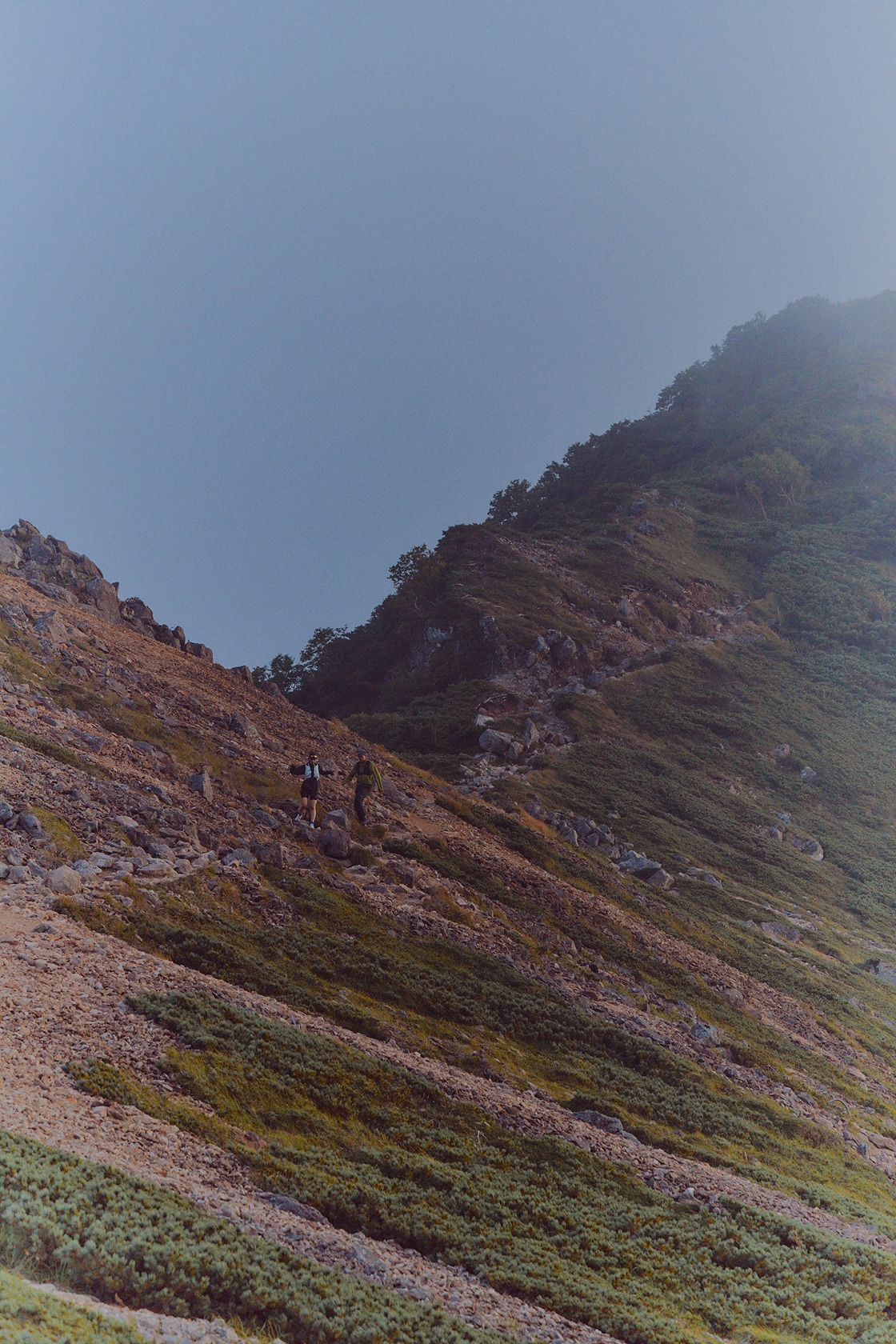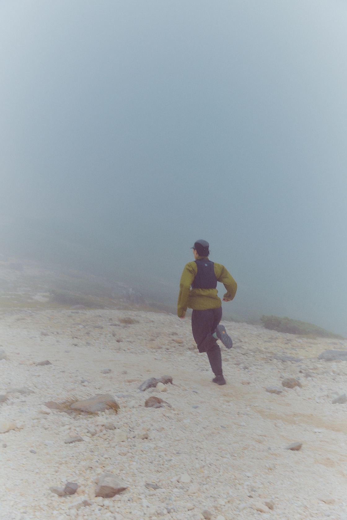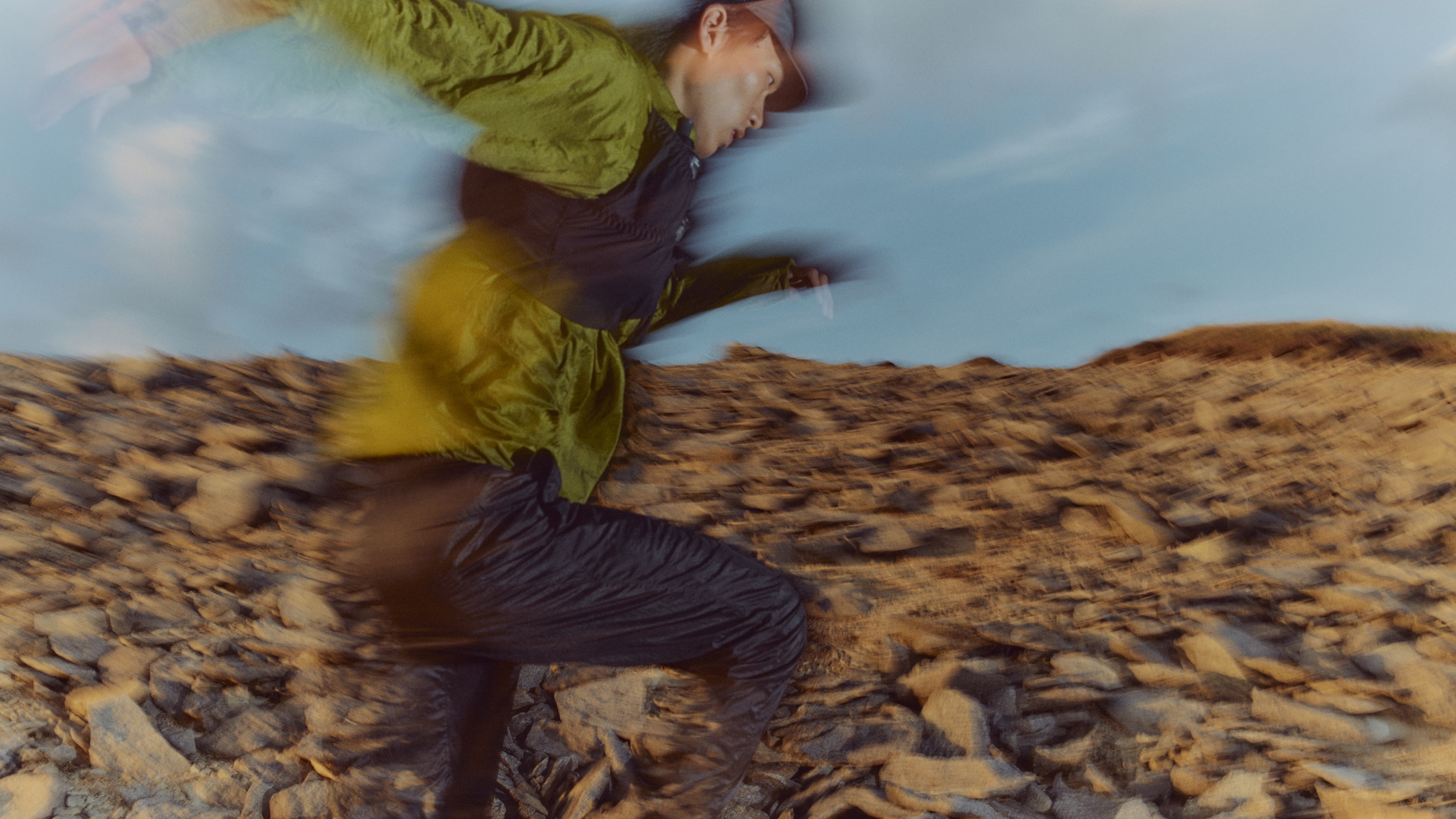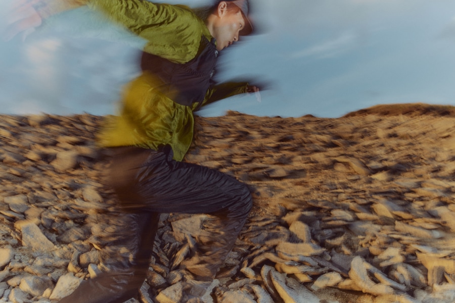 高度のある山中でときに強く吹き荒ぶ風から身体を守り、衣服内の冷えを防ぐウィンドシェルジャケットは秋冬のトレイルランニングシーンにおいて欠かすことができないプロダクト。とりわけゴールドウインが新たに開発した〈Floating Wind Shell Jacket〉は、単に耐風性に優れているだけでなく、肌馴染みのよさと通気性を高いレベルで兼ね備え、ストレスなく疾走することができます。